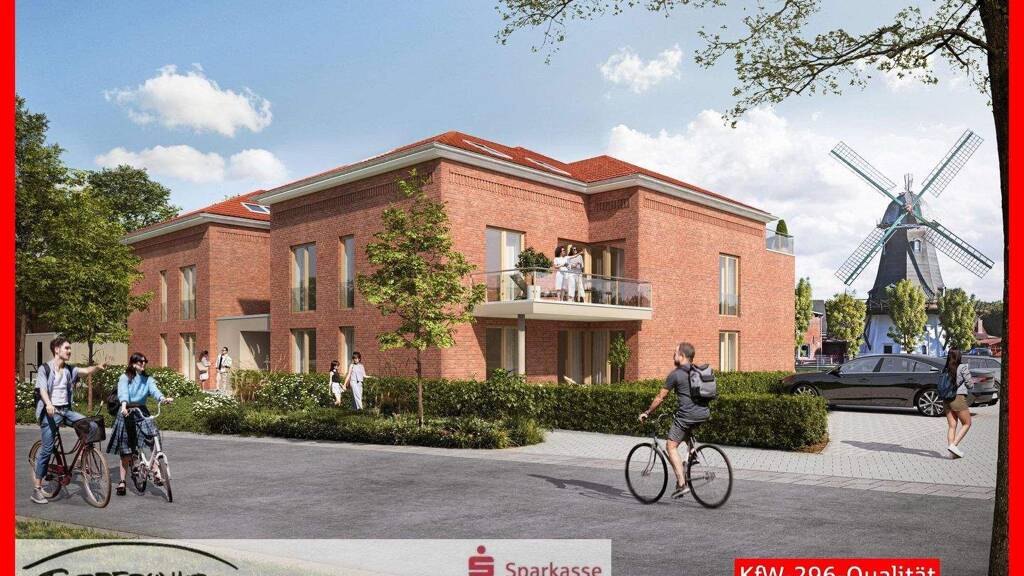 Die Wohnung ist mit bodentiefen Fenstern mit elektrischen Außenjalousien, hochwertigen Vinylböden in den Wohnräumen sowie stilvollen Fliesen im Badezimmer und Gäste-WC ausgestattet. Die energetische Qualität entspricht dem KfW-296-Standard, was Ihnen attraktive Fördermöglichkeiten eröffnet. Die Berater der Sparkasse Emden - TREFFPUNKT Immobilien - stehen Ihnen hierbei gern zur Seite.