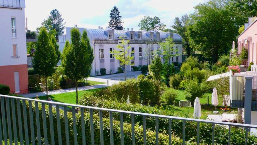 Auf dem großzügigen, tiefem Westbalkon können Sie die Abendsonne genießen. Der Blick reicht über den grünen Innenhof bis ans Würmufer.