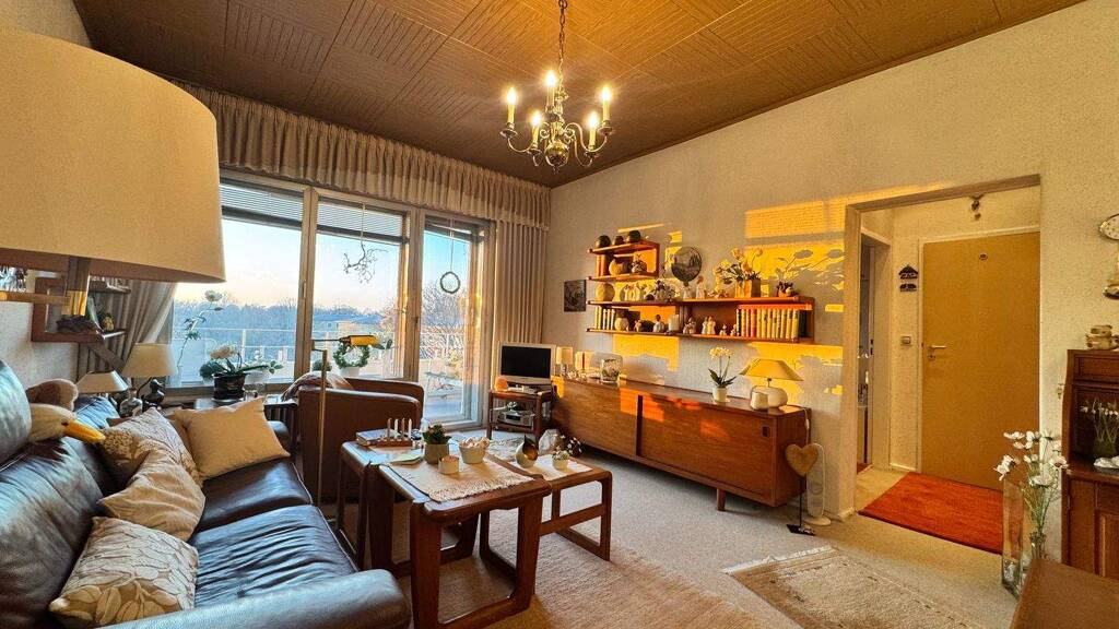 Diese gepflegte und vollständig möblierte 2-Zimmer-Eigentumswohnung befindet sich im vierten Obergeschoss eines solide errichteten Wohnhauses aus den 1960er-Jahren. Das Gebäude umfasst fünf Etagen und verfügt über einen Aufzug, einen praktischen Wäscheservice gegen minimale Reinigungsgebühren, hauseigene Parkplätze, einen Fahrradkeller sowie separate Mieterkeller. Zur Wohnung gehört zusätzlich ein weiterer, bereits langjährig angemieteter Kellerraum. Die Wohnräume sind mit einem Teppichboden ausgestattet, der eine wohnliche und warme Atmosphäre schafft.