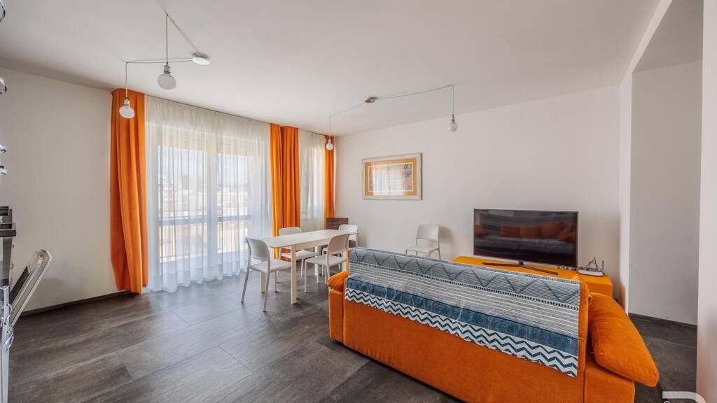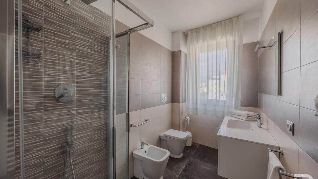 Die erste Wohnung, platziert auf dem 1. Stock des Gebäudes, begrüßt Sie mit einem offenen und lebendigen Raumkonzept, welches durch großzügige Fenster sehr hell gestaltet ist. Das besondere Highlight dieser Wohnung ist ihre geräumige Terrasse sowie ein einladender Balkon. Beide sind nicht nur perfekt zum Entspannen nach einem langen Tag, sondern bieten zudem genügend Platz für gemütliche Grillabende mit Freunden oder Familie. Die zweite Wohnung hingegen befindet sich höher gelegen, im 5. Stock, und bietet somit einen atemberaubenden Ausblick, der Sie jeden Morgen aufs Neue begeistern wird. Die Wohnung verfügt nämlich über eine großzügige Dachterrasse, von der aus Sie nicht nur auf das schimmernde Meer, sondern auch auf die malerischen Berge blicken können. Sie werden es lieben, hier die ersten Sonnenstrahlen mit einer Tasse Kaffee begrüßen zu können oder den Abend bei einem Glas Wein und dem romantischen Blick auf die untergehende Sonne hinter den Bergen ausklingen zu lassen. Große Fenster durchfluten die Räume mit Tageslicht und sorgen für eine stimmungsvolle und angenehme Atmosphäre.