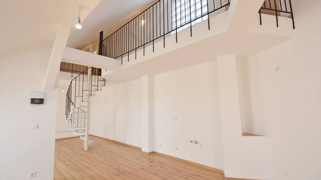 * Loftartiges Wohn -Esszimmer mit Küche und Wendeltreppe zur Galerie: 22,95m²