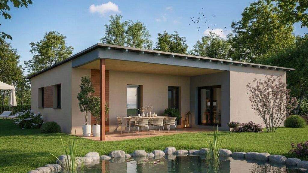 Der offen gestaltete Wohn- und Essbereich schafft ein helles, einladendes Ambiente und bietet direkten Zugang zum Garten. Die ebenerdige Bauweise ermöglicht komfortables, barrierearmes Wohnen und macht den Bungalow ideal für Paare, kleine Familien oder Ruhesuchende.