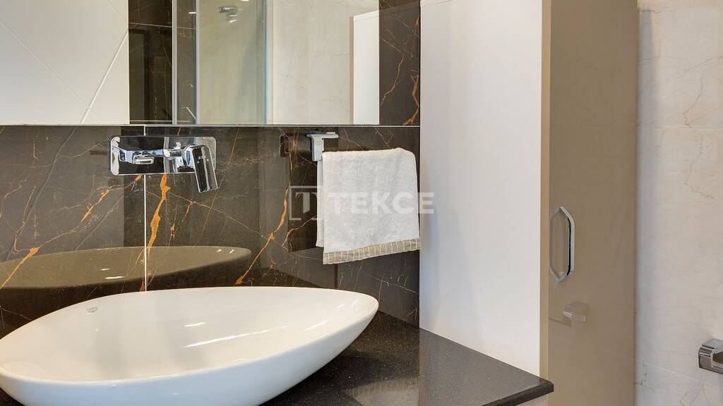 Die Wohnung besteht aus einem Wohnzimmer, einem Schlafzimmer, einer offenen Küche, einem Badezimmer und einem Balkon. Sie verfügt über eine Stahltür, eine speziell entworfene Garderobe, abgehängte Decken und versteckte LED-Beleuchtung, Keramikfliesen in allen Bereichen, ein dreifaches Einbauset, ein VRV-System sowie eine Klimaanlage mit Heizung und Kühlung.