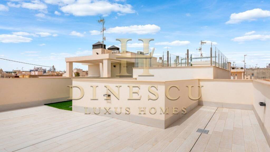 Schlüsselfertiges Stadt-Penthouse mit modernem Interieur, großen Terrassen und Pool nur 200 Meter vom Strand entfernt