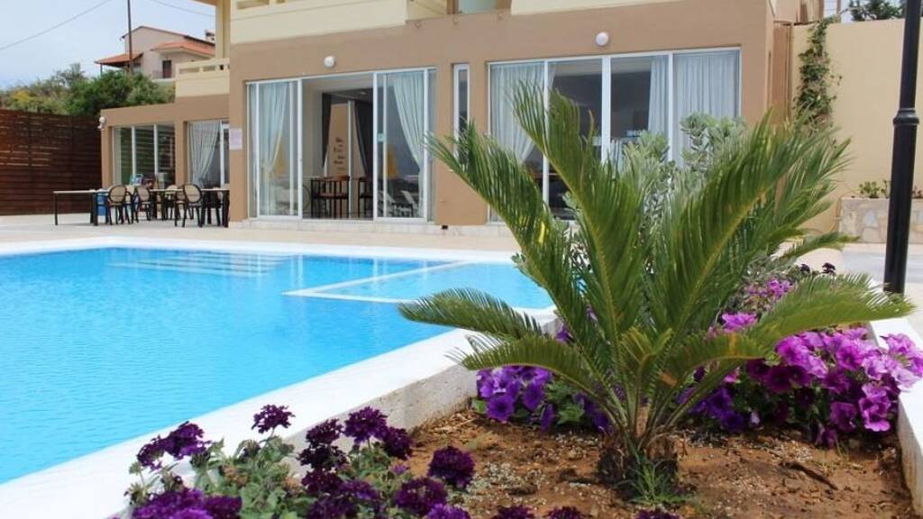 Ein 1.500 m² großes Hotel auf einem 3.300 m² großen Grundstück, erbaut auf einem Hügel, mit atemberaubendem Panoramablick, nur 200 Meter vom gut organisierten Strand von Stalos und 7 km vom Zentrum der schönen Stadt Chania entfernt.