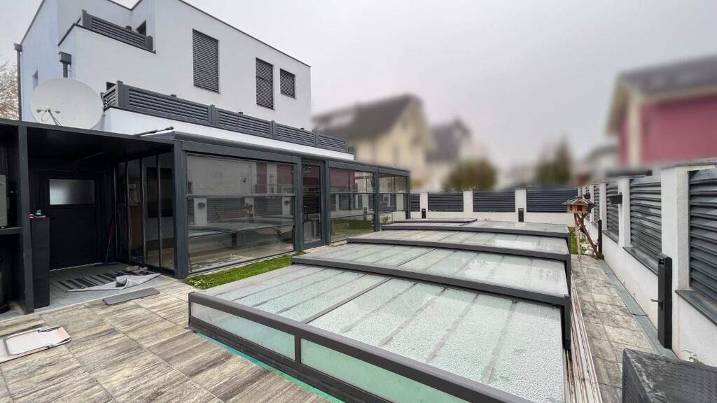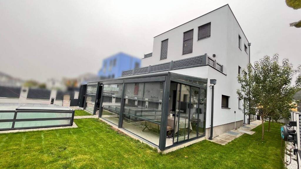 - Erdgeschoss: Vorraum, Küche mit Essbereich, Wohnzimmer, Terrasse/Wintergarten, WC, Abstellraum