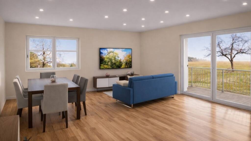 Diese moderne und intelligent geschnittene Wohnung vereint zeitgemäßen Wohnkomfort mit einer stilvollen, offenen Raumgestaltung. Große Fensterflächen durchfluten die Räume mit Tageslicht und schaffen eine helle, einladende Wohnatmosphäre.