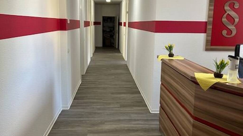 Die Einheit ist bequem über ein gepflegtes Treppenhaus oder einen Fahrstuhl erreichbar. Im Eingangsbereich empfängt Sie ein einladender Empfangstresen, direkt angrenzend befindet sich ein großzügiges Wartezimmer, das auch für die Kunden angenehm gestaltet ist.