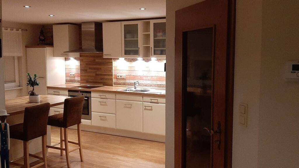 - Moderne KĂĽche mit Zugang zur ĂĽberdachten Terrasse