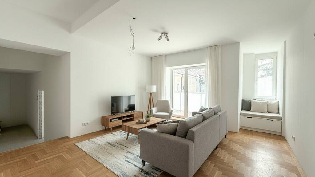 DIe Wohnung befindet sich derzeit im belagsfertigen Zustand und wird mit den Böden nach Ihrer Wahl ausgestattet, auch den Belag am Balkon können Sie noch wählen.