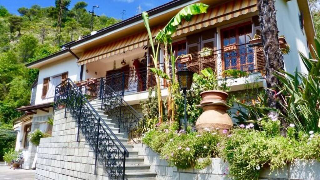 Diese äußerst geräumige Villa liegt mit weitem Blick über das Tal und das am Horizont schimmernde Meer leicht erhöht oberhalb des Ortes Camporosso. Das Haus hat circa 350 qm Wohnfläche, 136 qm Nutzfläche sowie 70 qm Terrassenfläche und ist umgeben von einem rund 1.571 qm (grüne Markierung) Gartengrundstück. Die Lage am Ende einer kleinen Stichstraße ist wunderbar ruhig; in der Nachbarschaft finden sich vereinzelte Häuser umgeben von Olivenhainen und mediterraner Macchia. Die Infrastruktur von Camporosso ist ausgezeichnet und in 1,2 km zu erreichen. Zum Meer und den Stränden sind es 5 km, Sanremo und Menton liegen circa 30, Nizza und Monte Carlo 60 Autominuten entfernt.