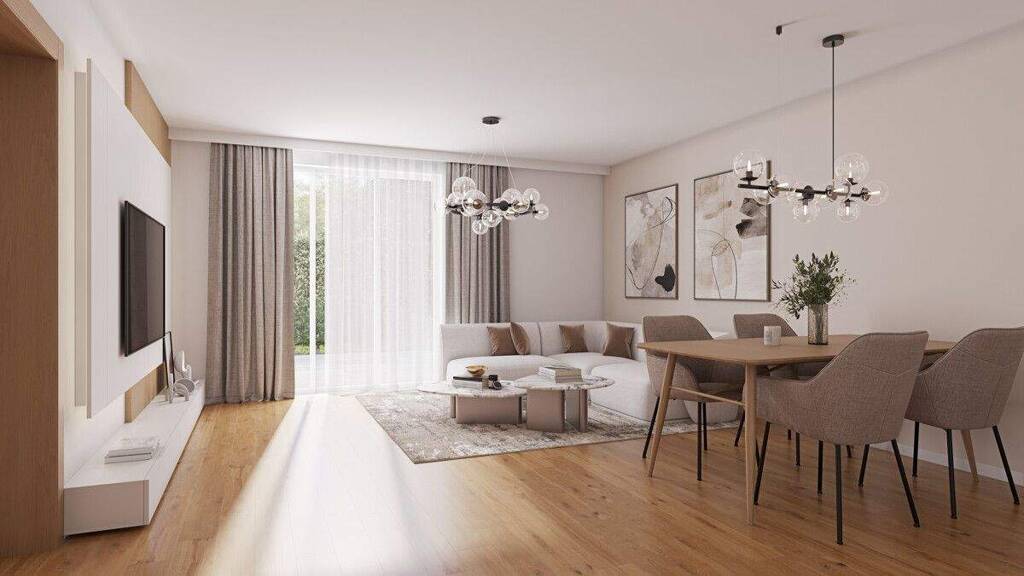 Diese elegante Erdgeschosswohnung mit Garten befindet sich in einem kleinen Mehrparteienhaus mit nur sieben Wohneinheiten und bietet ein besonders privates Wohngefühl. Mit ca. 54 m² Wohnfläche, einem Tiefgaragenstellplatz sowie einem eigenen Kellerabteil vereint sie modernen Komfort mit hoher Lebensqualität. Diese helle Wohnung überzeugt durch zeitloses Design.
