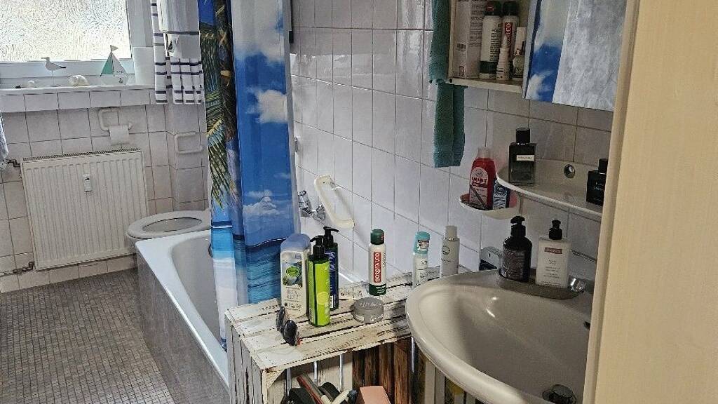 Diele mit Abstellraum, Küche, Badezimmer mit Fenster, Schlafen, Wohnen, Balkon