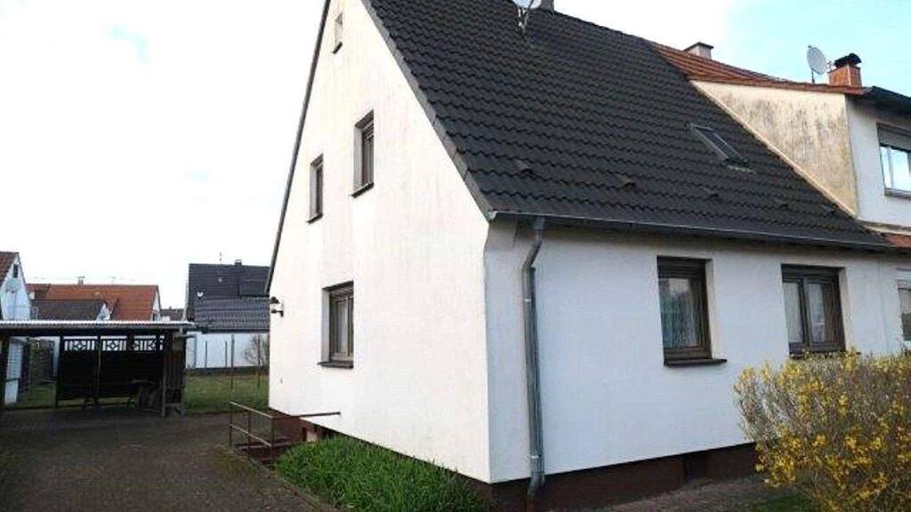 Sofort einziehen ist möglich. Die gepflegte voll unterkellerte Doppelhaushälfte steht auf einem schönen 659 qm großen Grundstück in der Kirchfeldsiedlung. Der Grundstückwert liegt bei knapp Euro 500.000.00. Das Grundstück ist für Kinder, Hunde, zum Gärtnern oder nur Entspannen ideal. Auf dem Grundstück befindet sich ein Carport und mehrere Nebengebäude/Schuppen. Der hintere Teil des Grundstücks bzw. der Garten ist hoch eingezäunt und kaum einsehbar. Die Grundstückszufahrt bietet viel Platz für ca. 4 PKWs. bzw. unteranderem auch für ein Wohnmobil. Die Wohnfläche (ohne Kellerfläche und Dachbodenfläche gerechnet) von ca. 100 m² verteilt sich über zwei Stockwerke EG und 1. OG. Im EG befinden sich Küche, Wohnzimmer, ein großzügiges Badezimmer mit Dusche und WC, sowie ein zusätzliches Gäste-WC mit Fenster. Im 1. OG befinden sich 3 Zimmer zur beliebigen Nutzung und ein WC mit Waschgelegenheit und Fenster. Zusätzlich gibt es noch im 2. OG einen ca. 30 qm nicht ausgebauten Dachboden (in dem man von der Höhe her sehr gut stehen kann) mit Fenster. Das Haus hat noch einen großen Vorteil, es besitzt keine unschöne Holzverkleidung an den Decken oder an den Wänden. Nur ein Kellerraum ist mit Holz verkleidet. Die Elektroleitungen wurden schon erneuert und durch dreiadriges Kabel ersetzt. Auch die Wasserleitungen und Abwasserrohre wurden erneuert. Das gesamte Haus wurde mit Flächenheizkörper ausgestattet. Im Keller (Zugang von innen und außen möglich) befindet sich der Heizungsraum, ein Badezimmer mit Dusche, Badewanne und Handwaschbecken, sowie zwei weitere, mit Flächenheizkörper ausgestattete, ggf. bewohnbare Räume. Ohne großen Aufwand könnte man das Haus sofort bewohnen. Es gibt keinen Reparaturstau in diesem Haus. Ideal für eine Familie mit einem Kind. Anbauen oder neu bauen wäre auch möglich, je nach Bedürfnis und Geldbeutel. Die Bebauungsgrenzen sind zurzeit noch nicht ausgeschöpft. Bei einem kompletten Neubau ist eine 2-geschossige Bauweise mit zwei Vollgeschossen Pflicht. Die gemauerten Nebengebäude (ein Nebengebäude besitzt zwei Heizkörper vom Haus gesteuert und einen Brunnen zur kostenlosen Gartenbewässerung) haben zusätzlich ca. 30 qm Nutzfläche. Im laufe der Zeit wurden immer wieder Sanierungsarbeiten durchgeführt. Die Fassaden-Dämmung wurde vor einigen Jahren nachträglich angebracht. Durch diese diversen Erneuerungen besitzt das Haus einen guten D Wert im Energieausweis. Ein Sachwertgutachten von einem Karlsruher Baugutachter über Euro 670.000,- liegt vor.