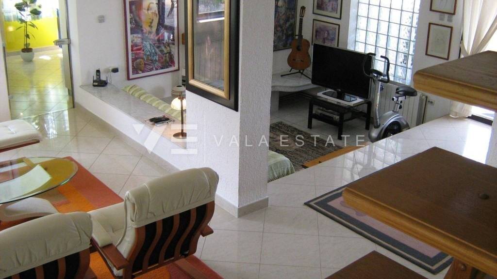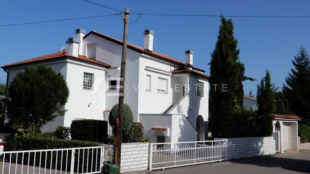 Immobilieninsel Krk, Malinska eine Doppelhaushälfte mit vier möblierten Wohnungen auf 300 m2 zu verkaufen. Im Untergeschoss befindet sich ein Keller mit einer Werkstatt von 30 m2. Im Erdgeschoss befinden sich zwei Wohnungen von ca. Jeweils 50 m2, mit einer großen überdachten Terrasse von 35 m2. Eine Wohnung im Erdgeschoss besteht aus einem Flur, einem Badezimmer, zwei Schlafzimmern, einer Küche mit Esszimmer und einer Terrasse. Die zweite Wohnung besteht aus Flur, Bad, Wohnzimmer, Küche mit Esszimmer, Schlafzimmer und Terrasse. Im ersten Stock befindet sich eine große, komfortable Wohnung von ca. 100 m2, bestehend aus Flur, Toilette, zwei Abstellräumen, einem großen Wohnzimmer auf zwei Ebenen, einem Schlafzimmer, einem Badezimmer, einem großen Esszimmer mit Küche und einer überdachten Terrasse von 35 m2. Das hohe Dachgeschoss besteht aus einem Eingangsbereich, Badezimmer, zwei Schlafzimmern, Garderobe, Wohnzimmer, Dachboden, Terrasse und umfasst ca. 80 m2. Im Erdgeschoss gibt es außerdem einen Geschäftsraum von 22 m2, einen Heizraum für die Zentralheizung, eine Toilette und einen kleinen Holzschuppen. Neben dem Haus befindet sich eine Garage. Im wunderschön angelegten und grünen Garten gibt es einen geschlossenen Pavillon und drei Parkplätze. Die Lage ist großartig, nur 5 Gehminuten von schönen Stränden und dem Zentrum mit allen Einrichtungen entfernt. Diese Immobilie ist eine außergewöhnliche Investitionsmöglichkeit für die touristische Vermietung sowie für den Eigenheimbau.