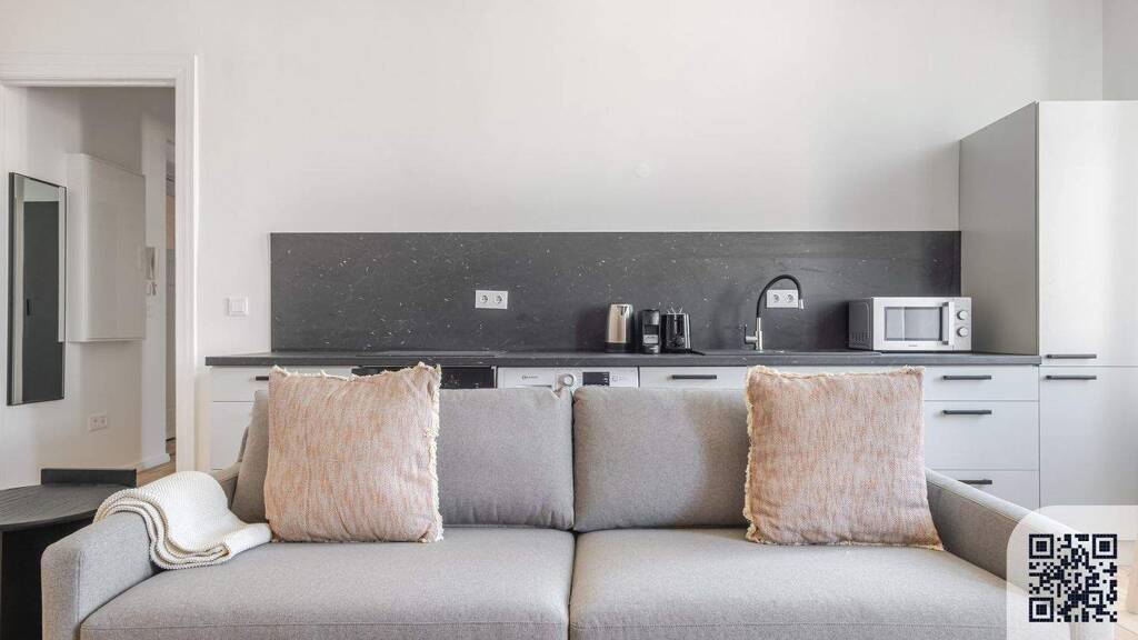 Wie bei jedem Blueground Wohnung finden Sie einen durchdacht gestalteten Raum mit schönen Möbeln. und eine voll ausgestattete Küche in diesem Einzimmerwohnung. Und dank unserer hochwertigen Matratzen können Sie sich entspannen, weil Sie sich immer wie zu Hause fühlen werden. Wenn Sie Lust auf etwas Spaß haben, können Sie die Berlin -Atmosphäre genießen oder sich die Unterhaltung mit dem kabellosen Premium-Lautsprecher oder dem Smart-TV direkt nach Hause holen. Diese Wohnung bietet auch Wäscherei in der Wohnung.