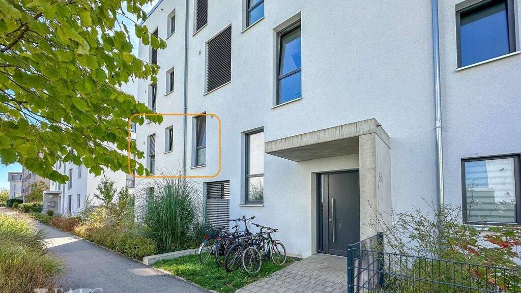 Diese großzügige und lichtdurchflutete 4-Zimmer-Wohnung befindet sich im 1. Obergeschoss eines modernen, architektonisch ansprechenden 8-Parteienhauses aus dem Jahr 2019 (Erbpacht). Das Gebäude wurde im energiesparenden KfW-55-Standard errichtet und verfügt über die Energieeffizienzklasse A+.