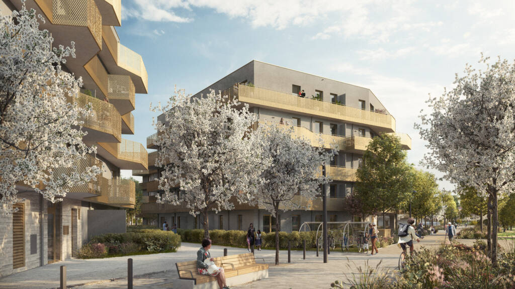 Ein weiteres Merkmal des Quartiers ist seine autofreie Oberfläche, was zur Reduktion von Lärm und Luftverschmutzung beiträgt und die Sicherheit der Fußgänger erhöht. Für Elektrofahrzeuge stehen Ladestationen in der Tiefgarage zur Verfügung, was die Nutzung umweltfreundlicher Transportmittel fördert. Die begrünten Plätze zwischen den Häusern, bieten den Bewohnern schöne Ruheoasen um die sonnigen Tage auszuschöpfen.