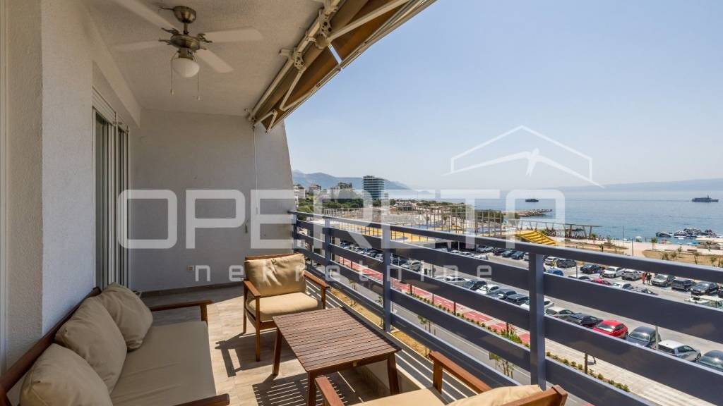 Die Immobilie liegt im fünften Stock eines Wohngebäudes mit Aufzug und verfügt über ca. 55 m Wohnfläche sowie eine 11 m große Loggia. Die Wohnung besteht aus einem großzügigen Wohnbereich mit moderner, voll ausgestatteter Küche und Essbereich, einem Schlafzimmer mit eigenem Bad, einem zusätzlichen Badezimmer, einem Flur, Eingangsbereich und Abstellraum. Vom Wohn- und Schlafzimmer gelangt man auf die Loggia mit Sitzmöbeln und einem herrlichen Blick auf das Meer und die umliegenden Inseln ideal zum Entspannen und Genießen des mediterranen Ambientes.