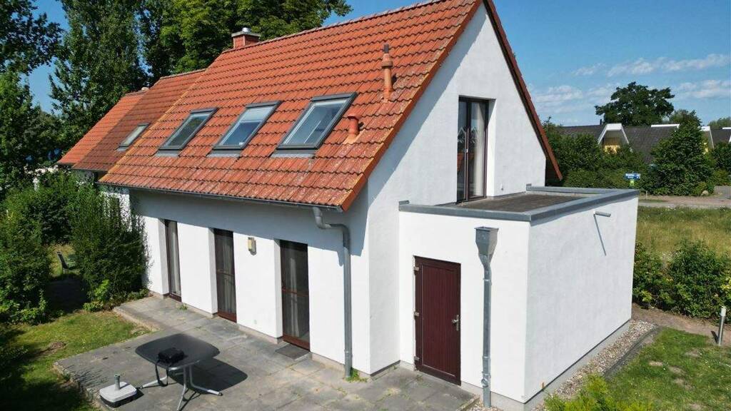 Willkommen im Ferienpark "Hafendorf Rechlin"! Erleben Sie einen unvergesslichen Urlaub in unserem modernen und komfortablen Ferienhaus, das zur Vermietung für Feriengäste innerhalb des Parks zur Verfügung steht. Unser Haus bietet Platz für bis zu 8 Personen und ist perfekt ausgestattet, um so den Aufenthalt sehr angenehm zu gestalten. Das Haus verfügt über eine Größe von 108 m² und bietet 4 Schlafzimmer: 2 Schlafzimmer mit Doppelbetten und 2 Schlafzimmer mit je 2 Einzelbetten. Es gibt 2 Bäder, eines mit WC, Dusche und Sauna im Erdgeschoss und ein weiteres mit WC/Dusche im Obergeschoss. Die Terrasse ist der ideale Ort, um den Urlaubsabend schön ausklingen zu lassen. Zusätzlich zum hellen Wohn-/Essbereich mit Kaminofen und der voll eingerichteten modernen Einbauküche verfügt das Haus über Gasheizung und Fußbodenheizung im Wohnbereich, einen Abstellraum für Gartenmöbel sowie 2 PKW-Stellplätze nur wenige Meter vom Haus entfernt.