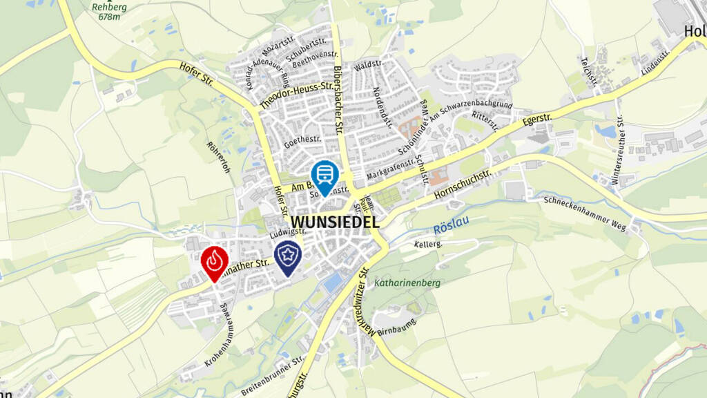 Die Kleinstadt Wunsiedel befindet sich in einer strategisch günstigen Lage im Herzen Bayerns, im Landkreis Wunsiedel im Fichtelgebirge. Der Ort ist optimal an das Verkehrsnetz angebunden: Die Autobahn A93 verbindet Wunsiedel direkt mit wichtigen Wirtschaftszentren wie Bayreuth, Hof und Nürnberg. Zudem ist die Anbindung an die Bundesstraßen B303 und B2 gewährleistet. Der nahegelegene Bahnhof ermöglicht eine effiziente Anbindung.
