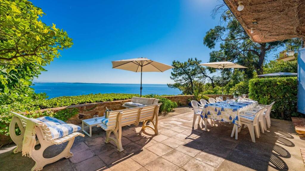 Charming stone Provencal villa perched on the hillside looking out over the Mediterranean.
