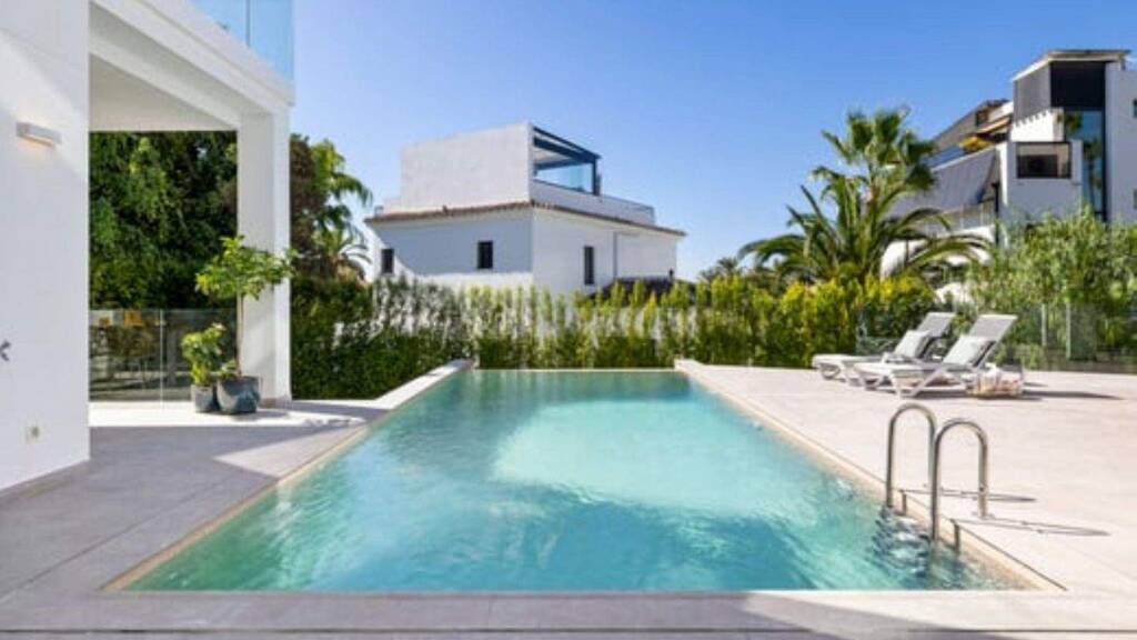 Eingebettet in das exklusive und ruhige Viertel Marbesa im Osten Marbellas bietet diese atemberaubende, freistehende Luxusvilla die perfekte Mischung aus moderner Eleganz und maritimem Charme. Nur 300 Meter vom Strand entfernt, steht die Villa auf einem großzügigen 670 m² großen Grundstück und bietet 408 m² wunderschön gestaltete Wohnfläche.