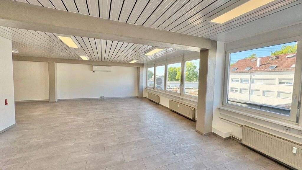 Moderne Büroeinheit an verkehrsgünstig gelegenem Gewerbestandort: Ab etwa September 2026 stehen in dem Büro- und Geschäftshaus ca. 68 m² Büroflächen im 3. Obergeschoss zur Anmietung zur Verfügung. Die Fläche wurde umfassend saniert und verfügt über eine moderne Ausstattung (Klimatisierung, neuer hochwertiger Bodenbelag, voll eingerichtete Teeküche, neuer und hochwertiger Sanitärbereich). Es können Außenstellplätze sowie Tiefgaragenstellplätze angemietet werden.