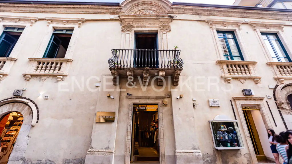 Der Palazzo Sgroi-Caprino im Herzen der Altstadt von Taormina ist ein eindrucksvolles Beispiel des sizilianischen Barocks aus dem 17. Jahrhundert, ein echtes Juwel, das im ältesten Teil von Taormina zwischen dem Uhrenturm und dem Dom liegt. Das prächtige Gebäude, das in den 1990er Jahren sorgfältig renoviert wurde, bietet einen Panoramablick auf die Bucht von Giardini Naxos, das Griechische Theater und den Ätna. Seine Einzigartigkeit wurde auch in renommierten Architektur Zeitschriften veröffentlicht. Das Anwesen zeichnet sich durch seine drei großen Terrassen aus, von denen man einen herrlichen Blick auf das Meer und die umliegenden archäologischen Ruinen hat. Man betritt das Haus vom Corso Umberto aus durch ein imposantes Portal, das von einem großen barocken Bogen umrahmt wird, und gelangt über eine eindrucksvolle Innentreppe aus dem typischen Taormina-Stein in den ersten Stock, wo sich ein großes Wohnzimmer und ein Esszimmer befinden, das mit einem Bogen und einem Kamin geschmückt ist, der von Michele Arrigo aus wertvollem Syrakus-Stein gefertigt wurde. Von hier aus hat man Zugang zu zwei Balkone: einer mit Blick aufs Meer und der andere, im barocken Stil, mit Blick auf den belebten Corso Umberto. In der ersten Etage befinden sich außerdem zwei Schlafzimmer, eines davon mit eigenem Bad, ein zweites Bad, eine funktionelle Küche und eine private Terrasse. Eine Holztreppe führt in den zweiten Stock, wo sich weitere Schlafzimmer und eine große Terrasse mit Blick auf das alte Kloster San Domenico befinden, die einen atemberaubenden Blick auf das Meer und das malerische Stadtzentrum bietet. Ein Wohnbereich mit Kamin und großer Terrasse vervollständigt diese Etage. Dieses Haus im historischen Zentrum von Taormina, das durch den Panoramablick auf die Bucht verzaubert, ist eine perfekte Mischung aus Geschichte und Komfort, bereichert durch Elemente aus dem 19. Jahrhundert, die seinen zeitlosen Charme unterstreichen. Eine einmalige Gelegenheit, sizilianische Authentizität in einer der eindrucksvollsten Ecken der Insel zu erleben, entweder als luxuriöse Privatresidenz oder als wertvolle Investition.