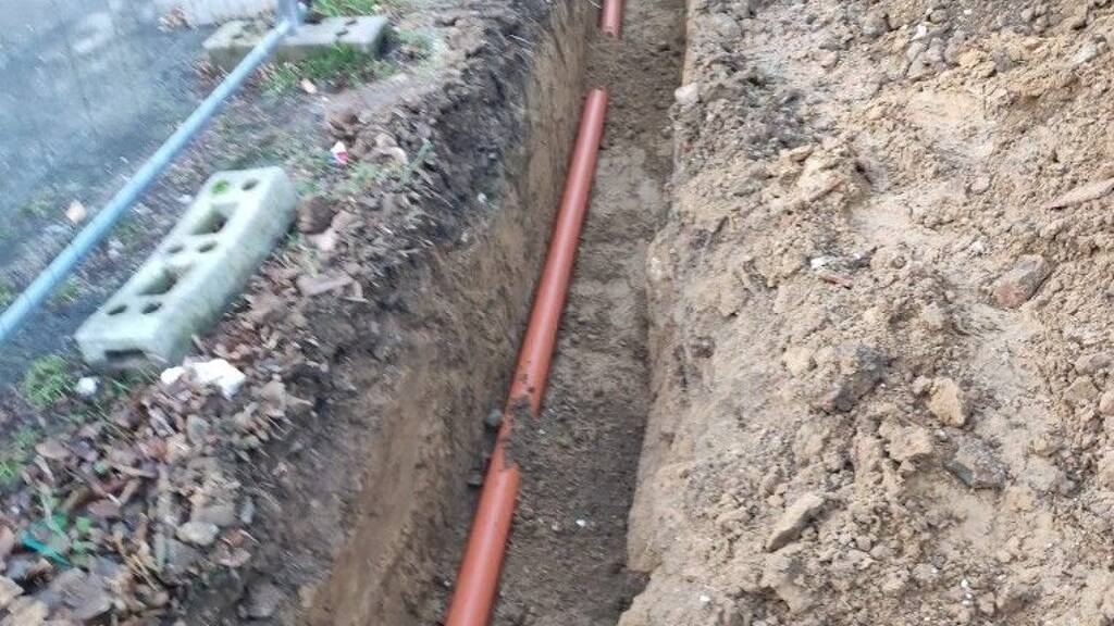 Das Grundstück besteht momentan noch aus 5 Parzellen (Flur 24, Nr. 183, 681, 969, 994 und 995), die miteinander vereinigt werden sollen. Weiterhin gehören jeweils ½-Anteile der Wegeflächen (Flur 24, Nr. 970, 971) zu den Grundstücken. Drei Leerrohre für Versorgungsleitungen und ein Abwasserkanal (grün) sind bereits verlegt (siehe Fotos). Es besteht die Verpflichtung die gemeinsame Wegefläche später zum Gehen und Fahren herzurichten. Die Kosten der Herstellung müssen zu ½ Anteil übernommen werden.