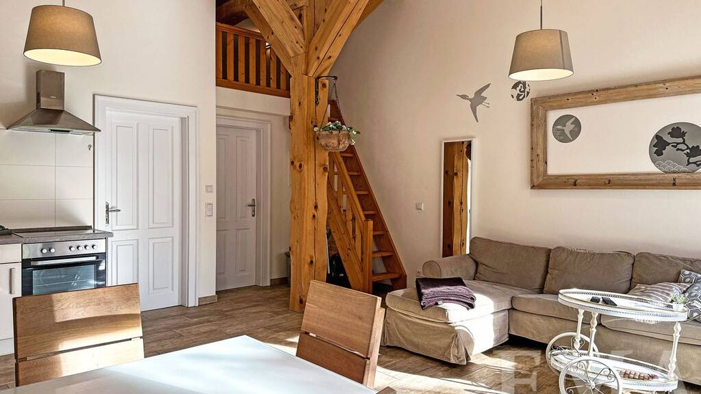 Die verschiedenen Wohneinheiten teilen sich fast identisch auf in einen großzügigen Wohn- und Essbereich mit Zugang zur Terrasse, eine offene Küche mit Einbauküche sowie ein modernes Badezimmer mit bodengleicher Dusche. Zwei der Einheiten verfügen über ein weiteres Zimmer sowie einen Schlafboden. In den anderen beiden Einheiten befinden sich zwei weitere Zimmer. Die Wohnfläche der verschiedenen Wohnungen variiert zwischen ca. 42 m² und ca. 52 m². Die Raumhöhen betragen ca. 4,30 m.