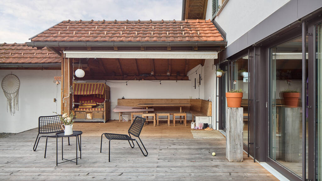 Im Innenbereich überzeugt die Immobilie mit einer exklusiven Tischlerküche, einem gemütlichen Kachelofen sowie hochwertigen Ausstattungsdetails wie Sauna und integriertem Wäscheabwurf. Das ausgebaute Atelier (ca. 28 m²) über der Doppelgarage mit separatem Zugang sowie ein charmantes Giebelschlafzimmer mit maßgefertigten Einbauschränken erweitern das vielseitige Raumangebot.