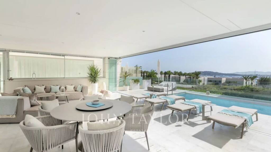 Das Herzstück dieser Immobilie ist die große private Terrasse mit flexiblem Design, die je nach Wetterlage geöffnet oder geschlossen werden kann und so ganzjährig genutzt werden kann. Hier befindet sich der private Pool - ideal, um die Intimität in einer privilegierten Umgebung zu genießen.