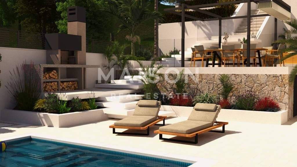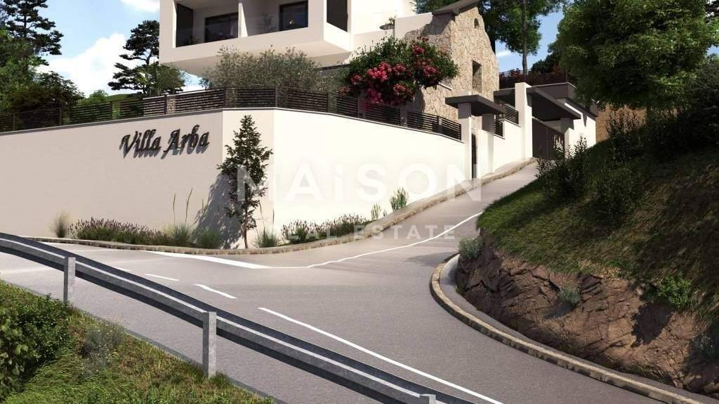 Das Obergeschoss umfasst zwei luxuriöse Master-Schlafzimmer, jeweils mit eigenem Badezimmer und Loggia, die Privatsphäre und beeindruckende Ausblicke bieten. Von hier aus gelangt man auch auf die Dachterrasse, die für technische Installationen vorgesehen ist und weiteren Gestaltungsspielraum bietet.
