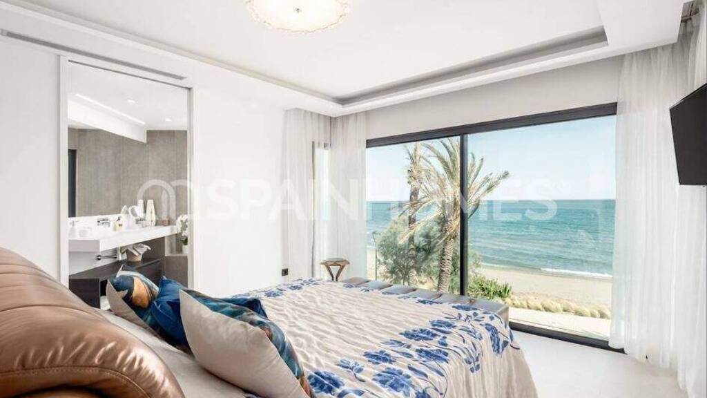 Das zum Verkauf stehende Haus in Estepona, Málaga, ist verkehrsgünstig gelegen und bietet eine gute Anbindung an die Küste. Der internationale Flughafen Málaga ist ca. 80 km, Marbella ca. 35 km und Puerto Banús ca. 30 km entfernt. Das Haus liegt in erster Strandreihe mit direktem Zugang zum Sand.