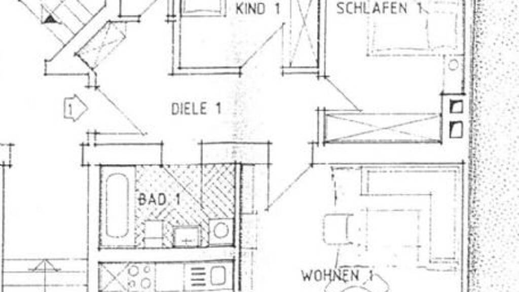 Wohnzimmer, 2 Schlafzimmer, Küche, innenliegendes Bad, Diele,