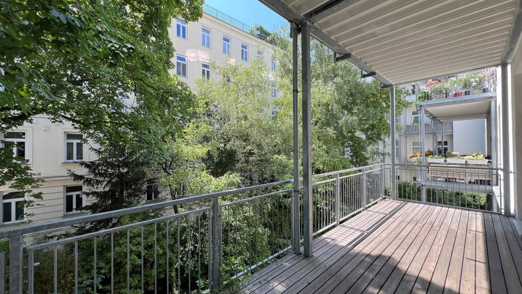 Die generalsanierte Wohnung liegt im 1. Stock (mit Lift ab Hochparterre) in einem repräsentativen Stilaltbau und ist zum ruhigen begrünten Innenhof (3 Zimmer + Balkon) sowie in einen weiteren ruhigen Innenhof (2 Zimmer + Küche) orientiert. Sie wird ab sofort auf 15 Jahre befristet vermietet. 3 Jahre Mindestmietdauer.