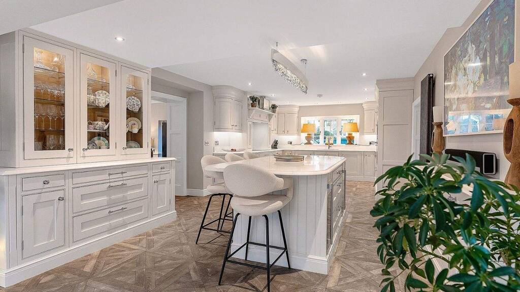 Zweifellos ist das Herzstück des Hauses die atemberaubende maßgeschneiderte Küche, wunderschön ausgestattet mit Quarz-Arbeitsplatten und einer umfassenden Auswahl hochwertiger Neff-Geräte, darunter ein Dampfofen, ein Lüfterofen, eine Mikrowelle und eine Kaffeemaschine, dazu ein integrierter Geschirrspüler, ein Kühlschrank unter der Arbeitsplatte und ein Quooker-Wasserhahn, der sofort kochendes, gefiltertes und sprudelndes Wasser liefert. Eine zentrale Kücheninsel verfügt über zwei Weinkühlschränke, perfekt für Gäste, während die Fußbodenheizung und der Amtico LVT-Boden zusätzlichen Komfort und Stil bieten.