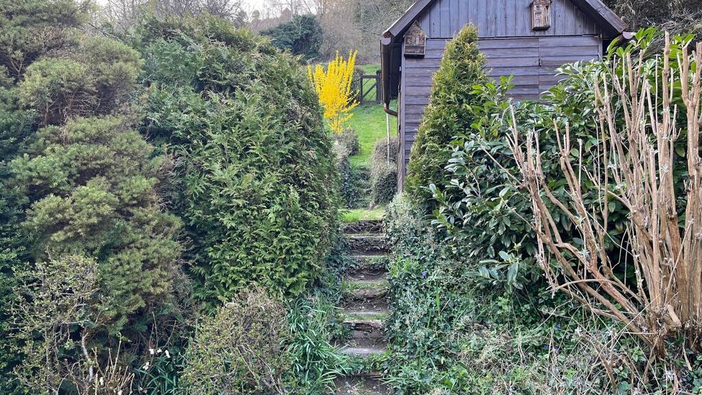 Das Gartengrundstück liegt in einem Landschaftsschutzgebiet und ist von einer gewachsenen Hecke umgeben, die für Privatsphäre sorgt.