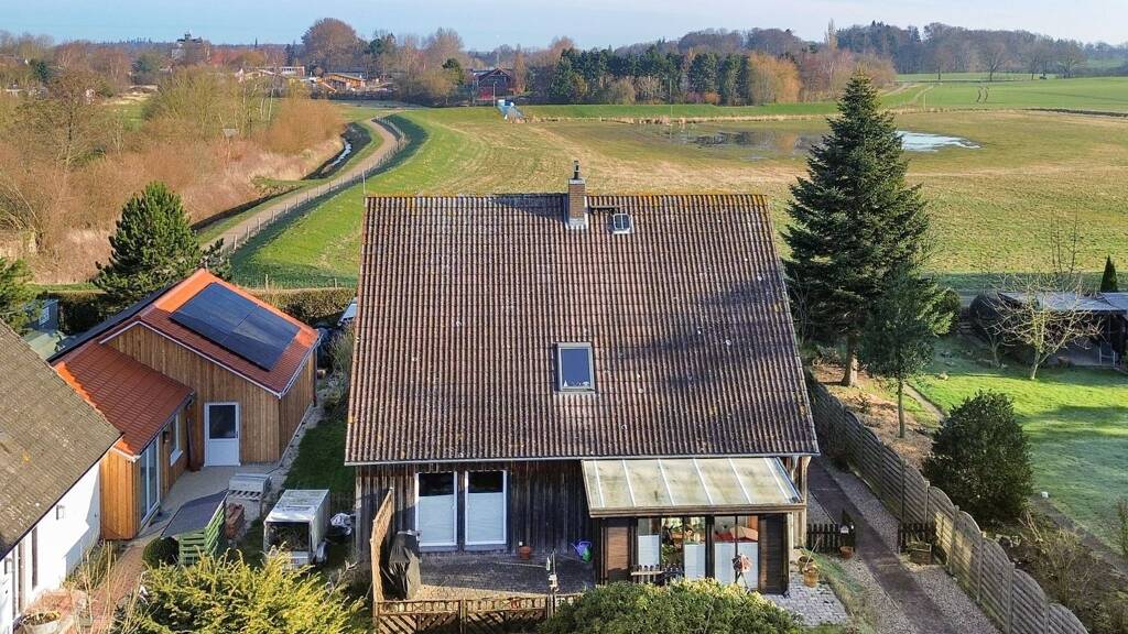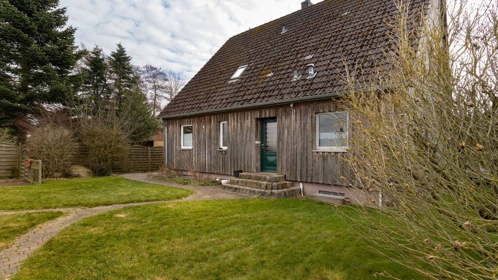 Dieses großzügige Einfamilienhaus befindet sich in einer der besten Lagen Geltings – die Ostsee ist ebenso schnell erreichbar wie Einkaufsmöglichkeiten, Kindergarten und Grundschule. Das charmante Haus wurde 1973 in Feldrandlage erbaut. In den vergangenen Jahren wurde die Immobilie mit viel Liebe zum Detail saniert und modernisiert. Aus einem durchschnittlichen Haus entstand ein durchdachtes und einladendes Zuhause mit Wohlfühlcharakter. Im Erdgeschoss überzeugt eine helle, gut ausgestattete Küche mit gemütlicher Essecke. Der offen gestaltete Wohn- und Essbereich mit Kaminofen bietet viel Platz für Familie und Gäste und wird durch eine vorgelagerte Veranda harmonisch ergänzt. Ein weiteres Zimmer sowie ein modernes Duschbad runden das Raumangebot auf dieser Ebene ab. Der großzügige Garten ist pflegeleicht angelegt und bietet ganztägig sonnige Plätze zum Entspannen. Ein Gartenhaus sorgt für zusätzlichen Stauraum für Gartengeräte. Im Obergeschoss befinden sich drei gut geschnittene Schlafzimmer – eines davon mit praktischem Ankleidebereich – sowie eine geräumige Diele und ein Wannenbad. Das Haus ist voll unterkellert. Der trockene Keller bietet vielfältige Nutzungsmöglichkeiten, sei es als Stauraum, Werkstatt oder Hobbybereich. Eine Garage am Eingang des Grundstücks rundet dieses attraktive Angebot ab.