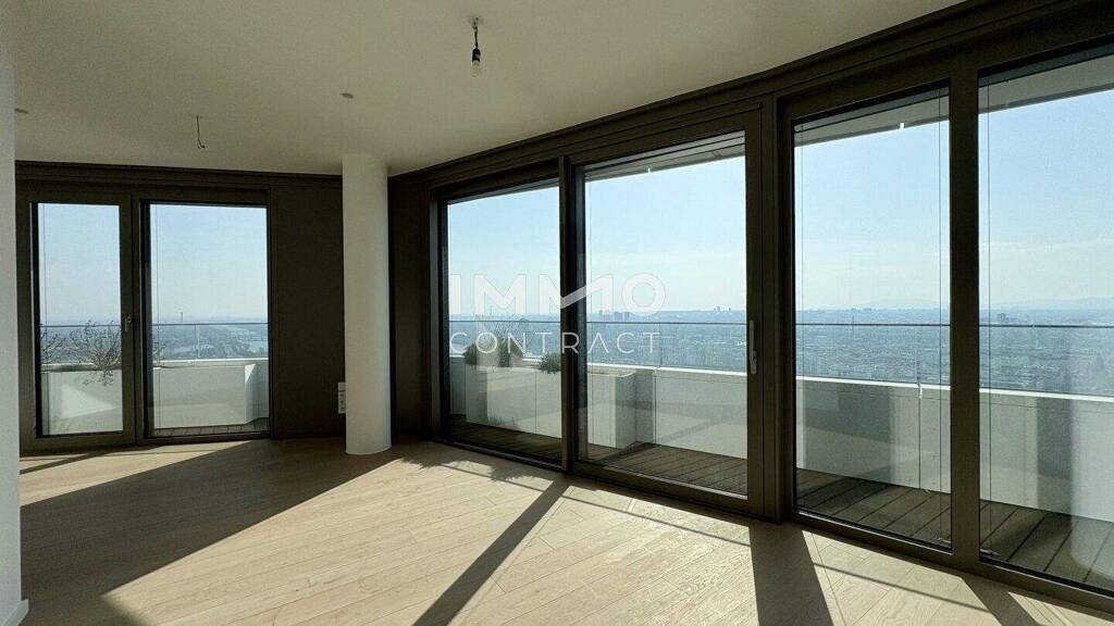 Ein echtes Highlight: Der freie Blick auf die Alte Donau, die Skyline der Wiener Innenstadt inklusive Stephansdom sowie die Neue Donau - eine seltene Kombination, die urbane Eleganz mit Naturverbundenheit vereint.