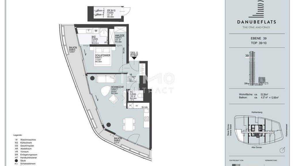 2 Zimmer  •  53,4 m²  •  39. Geschoss