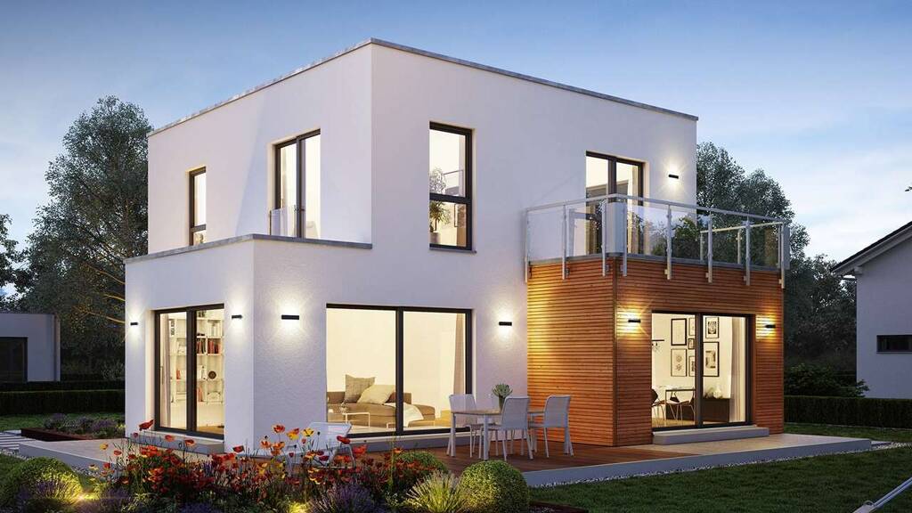 Das Einfamilienhaus mit Flachdach überzeugt schon beim ersten Blick mit seiner modernen Gestaltung. Auf einer Nettogrundfläche von ca. 134 m² lässt es sich inmitten einer minimalistisch gehaltenen Raumaufteilung stilvoll wohnen.