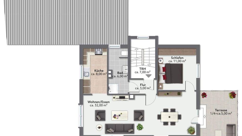 Im Dachgeschoss kann mit ein wenig Aufwand noch ein weitere kleine Wohnung mit ca. 32 m² geschaffen werden.