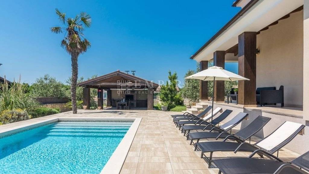 Zum Verkauf steht ein exklusives Resort mit Luxusvillen! Das Resort befindet sich nur 15 km nördlich von Pula und ist mit vier Sternen klassifiziert. Eröffnet im Jahr 2012, ist das Resort seitdem erfolgreich tätig und hat exzellente Bewertungen und Rückmeldungen von Besuchern erhalten. Das Resort besteht aus sechs Villen, die alle mit hochwertigem Mobiliar ausgestattet sind, und jede hat ihren eigenen 36 m² großen Pool. Jede Villa ist individuell gestaltet und befindet sich auf großzügigen Grundstücken, die Privatsphäre und Ruhe bieten und von modernen Gärten umgeben sind. Alle Villen teilen sich einen Sportpark für Beachvolleyball, Badminton, Tischtennis, Fußball und viele weitere Aktivitäten, während für die jüngeren Gäste ein Spielplatz bereitsteht.