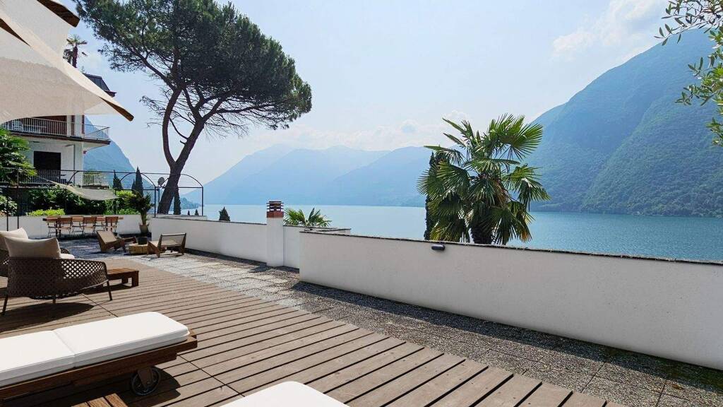 Dieses ebenerdige Haus besticht durch einen eleganten Außenbereich mit einem wunderschön angelegten Garten und einer großzügigen Terrasse im Erdgeschoss von ca. 100 m², ideal zum Essen im Freien oder zum Entspannen in der Sonne. Wer einen atemberaubenden Ausblick sucht, findet auf der zusätzlichen Panorama-Dachterrasse mit Solarium (ca. 150 m²) einen spektakulären 180-Grad-Panoramablick auf den See – der perfekte Ort für den Morgenkaffee oder einen Cocktail zum Sonnenuntergang. Nur 50 Meter von der Bushaltestelle nach Lugano/Porlezza entfernt, bietet diese Villa nicht nur einen ruhigen Rückzugsort, sondern auch eine gute Anbindung an die örtliche Infrastruktur. Das bezugsfertige Anwesen ist ideal für alle, die Ruhe und Privatsphäre suchen, ob als Ferienhaus oder Hauptwohnsitz. Lassen Sie sich diese einmalige Gelegenheit nicht entgehen: Vereinbaren Sie noch heute einen Besichtigungstermin! Kaufpreis: 715.000 €