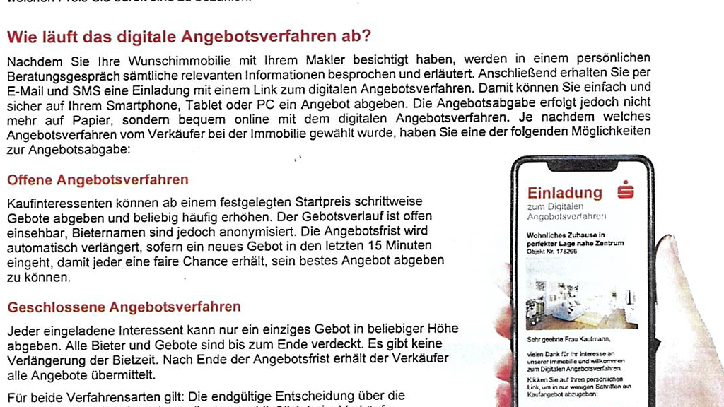 Informationen zum Angebotsverfahren finden Sie in der entsprechenden Broschüre in den Objektunterlagen.