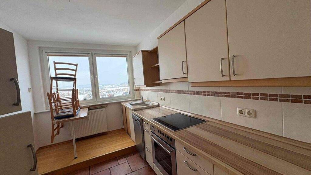 Hier wird eine tolle Wohnung in der 7. Etage mit individuellen Bodenbelägen und Wandbelägen, sowie einem modernen Badezimmer und einer Einbauküche angeboten. Die Fenster sind neu, dreifachverglast!
