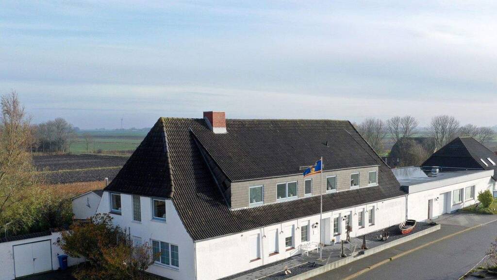 Das Haus bietet viele Möglichkeiten der Nutzung und hat eine lange Tradition auf Nordstrand. Ein Mehrgenerationenhaus mit 3-4 großen Wohnungen, bis zu 6 Ferienwohnungen oder Wohnhaus mit Gewerbeanteil (das flache Gebäude rechts neben dem Hauptgebäude gehört dazu)(Werkstatt, Büro, Praxis, Garage für bis zu 7 Fahrzeugen) ist möglich. Die Wohnfläche könnte bis auf ca. 680 m² erweitert werden. Die untere Etage wurde 2018 saniert, inkl. neuer Fenster, Türen, Bodenbeläge, Elektrik und Heizungsanlage. Die obere Etage (ca. 150 m²) besteht aus ehemaligen Gästezimmern und muss noch renoviert werden. Da es sich um Trockenbauwände handelt, kann dieser Bereich noch frei gestaltet werden.