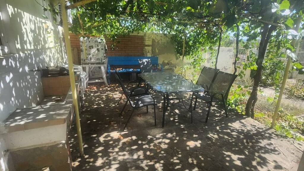 Haus in Goritsa, Region Pomorie, mit Garage und Swimmingpool. In der Garage gibt es einen Kamin und einen Ofen. Die Heizung erfolgt über einen Pelletventilator und Heizkörper.